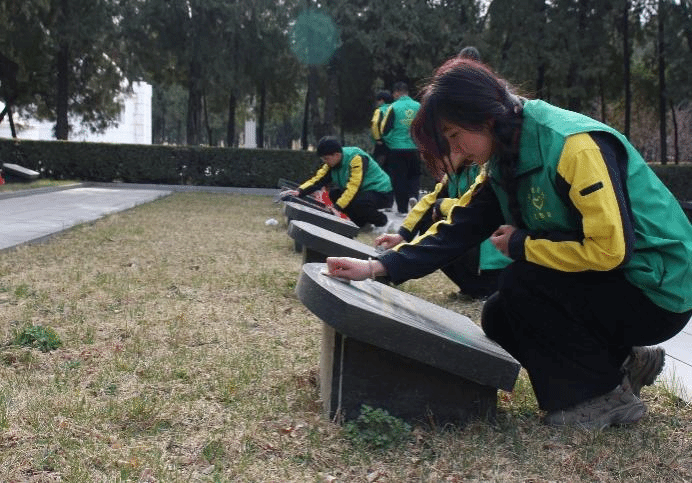 活动最后,全体师生来到烈士墓碑前,手持抹布和清洁工具,轻轻擦拭墓碑上的尘埃,细致地擦拭每一个刻在碑上的名字。阳光洒落,墓碑上的名字熠熠生辉,如同他们未曾熄灭的信仰之光,照耀着后来者前行的道路。大家用自己的行动表达最崇高的敬意,铭记他们的英勇付出,也让烈士的英名在新时代青年的心中闪闪发光。