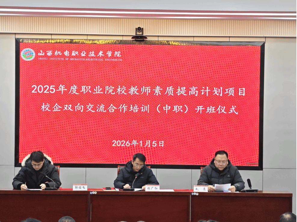 2026年1月5日上午,山西省2025年职业院校教师素质提高计划——校企双向交流培训(中职班)在我院求实报告厅开班。学院党委委员、副院长张广红,汽车工程系主任赵亮出席,山西省多所中职院校的100名骨干教师以及培训班班主任参加开班仪式。开班仪式由汽车工程系副主任郭俊飞主持。